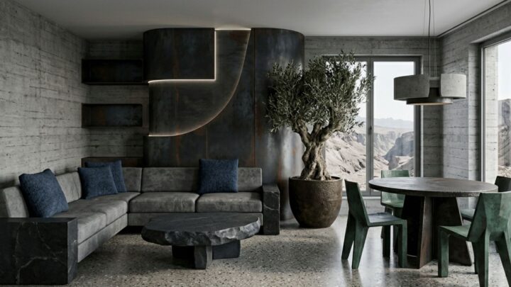 Aménagement intérieur : salon, chambre et bureau