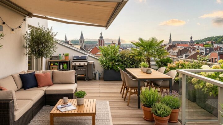 Aménager une terrasse de 30m² offre suffisamment d'espace pour créer un véritable salon d'extérieur. Sur une terrasse de 30 m², vous pouvez organiser un coin repas pour 6 à 8 personnes, un espace détente avec bains de soleil et même un petit coin végétalisé. Le choix du revêtement — bois, composite, dalles — détermine l'ambiance générale et l'entretien nécessaire.